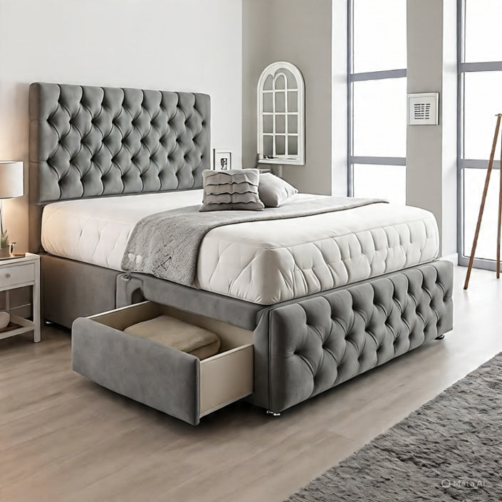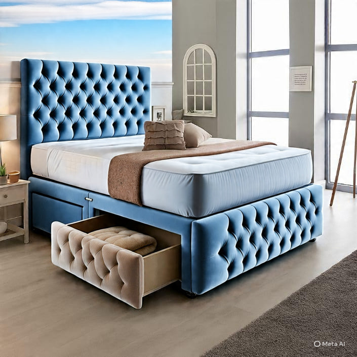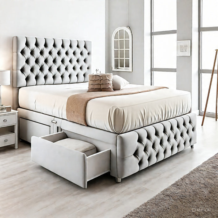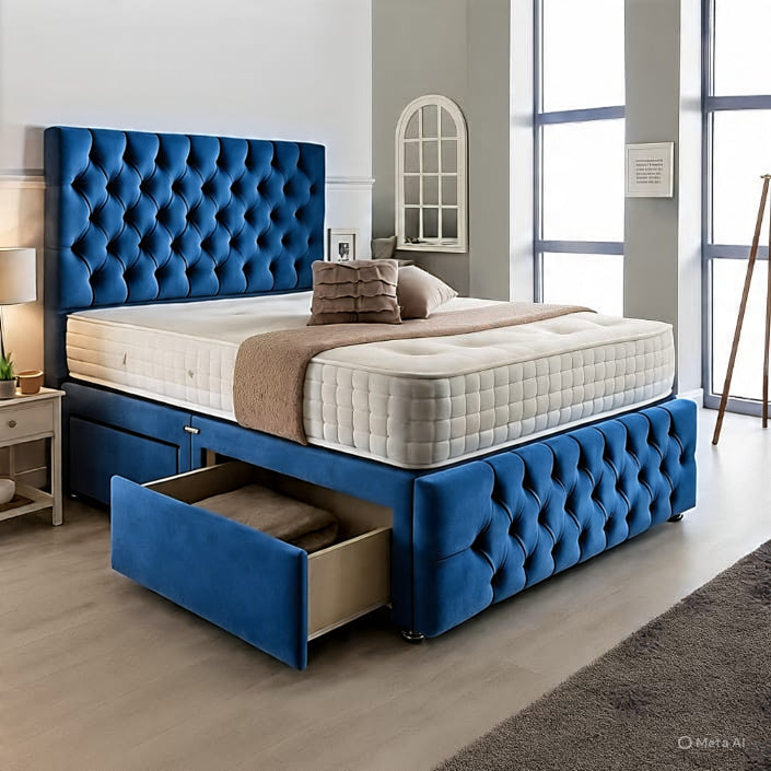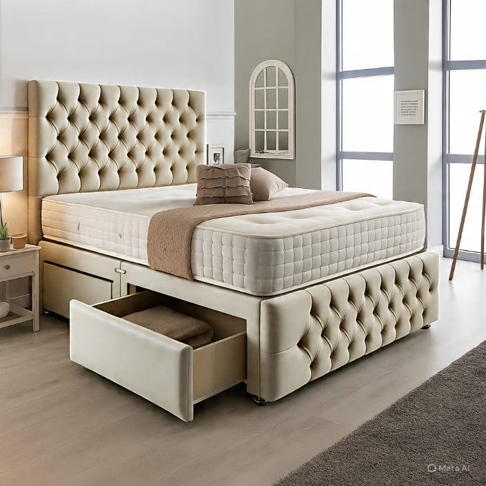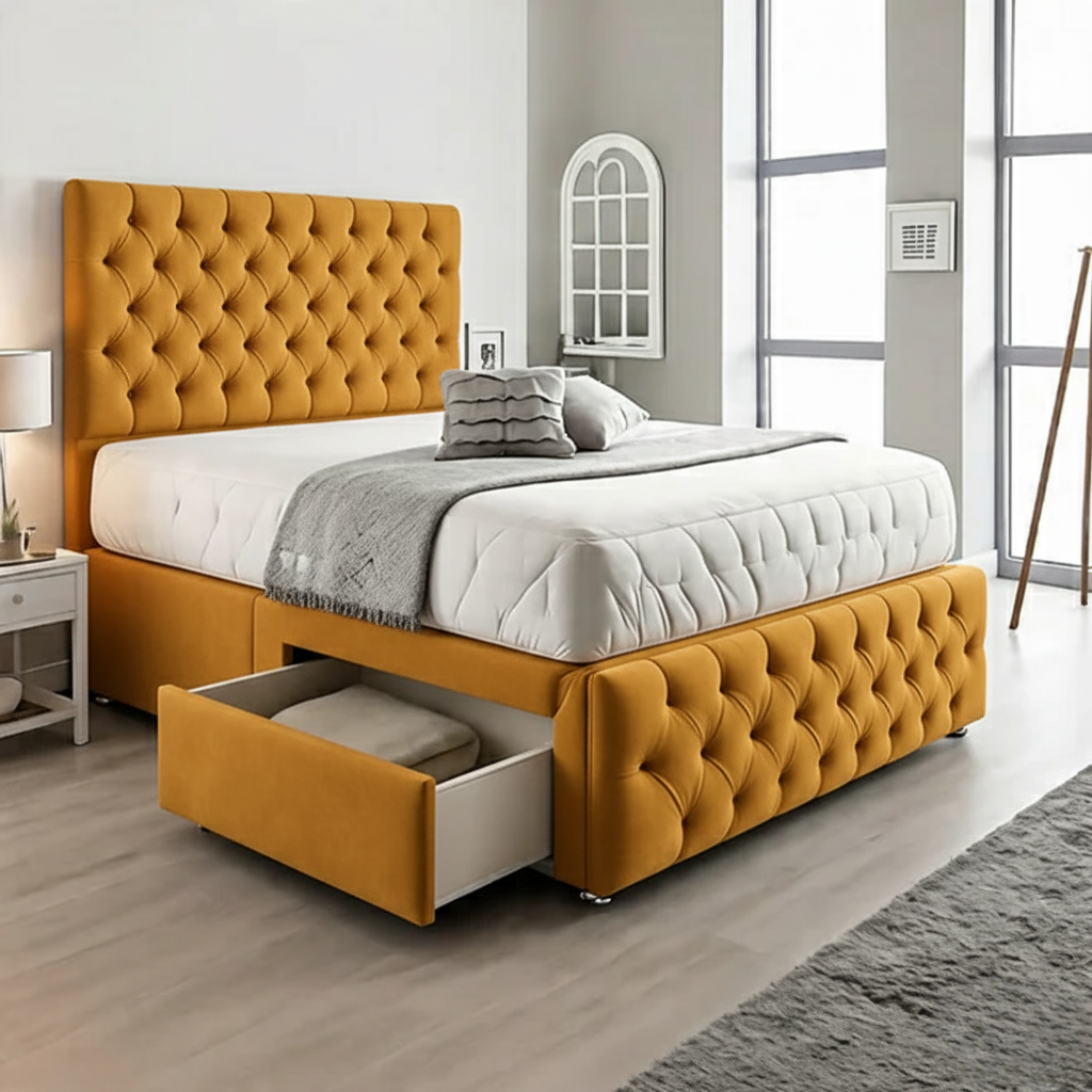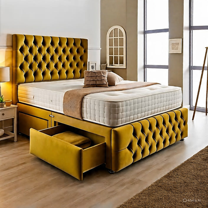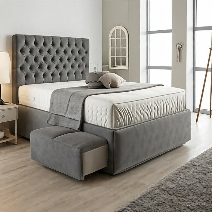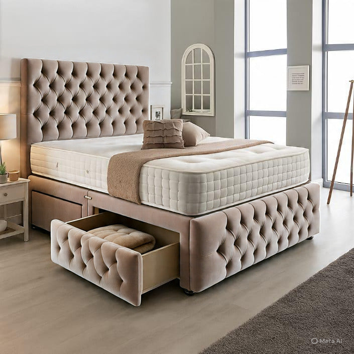 Add timeless elegance to your bedroom with the Chesterfield Matching Headboard & Footboard Divan Set. Featuring classic deep-buttoned detailing and a plush, upholstered finish, this bed set offers both luxurious style and exceptional support. Customise it with your preferred mattress type and optional built-in storage drawers for a practical yet sophisticated sleep solution.