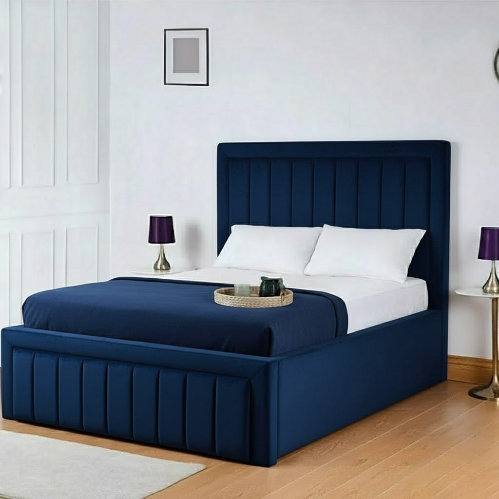 The Grand Panel Upholstered Bed blends timeless elegance with exceptional comfort. Featuring a tall, paneled headboard and premium fabric upholstery, it creates a luxurious focal point in any bedroom. The sturdy wooden frame ensures lasting durability, while its refined design suits both classic and modern interiors.