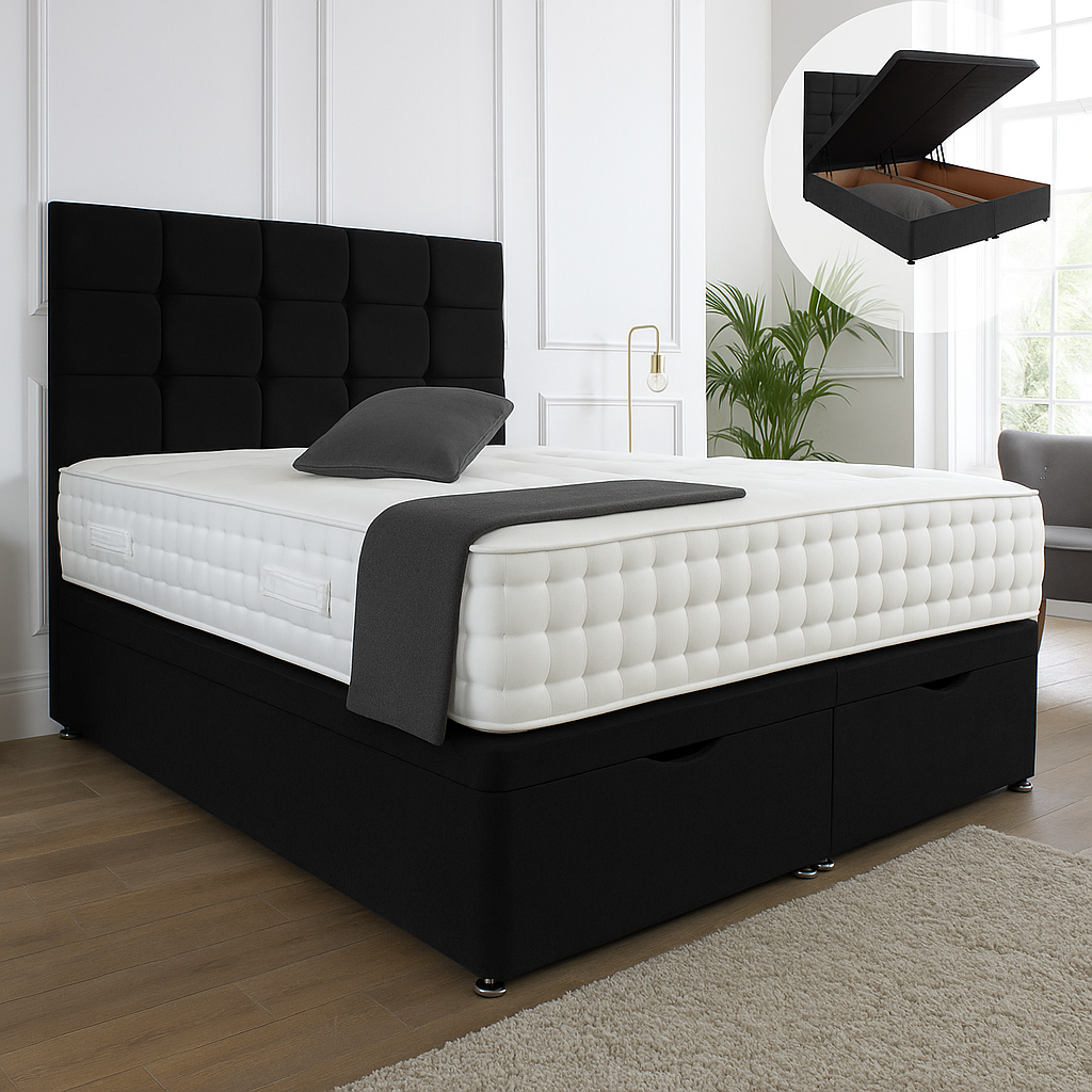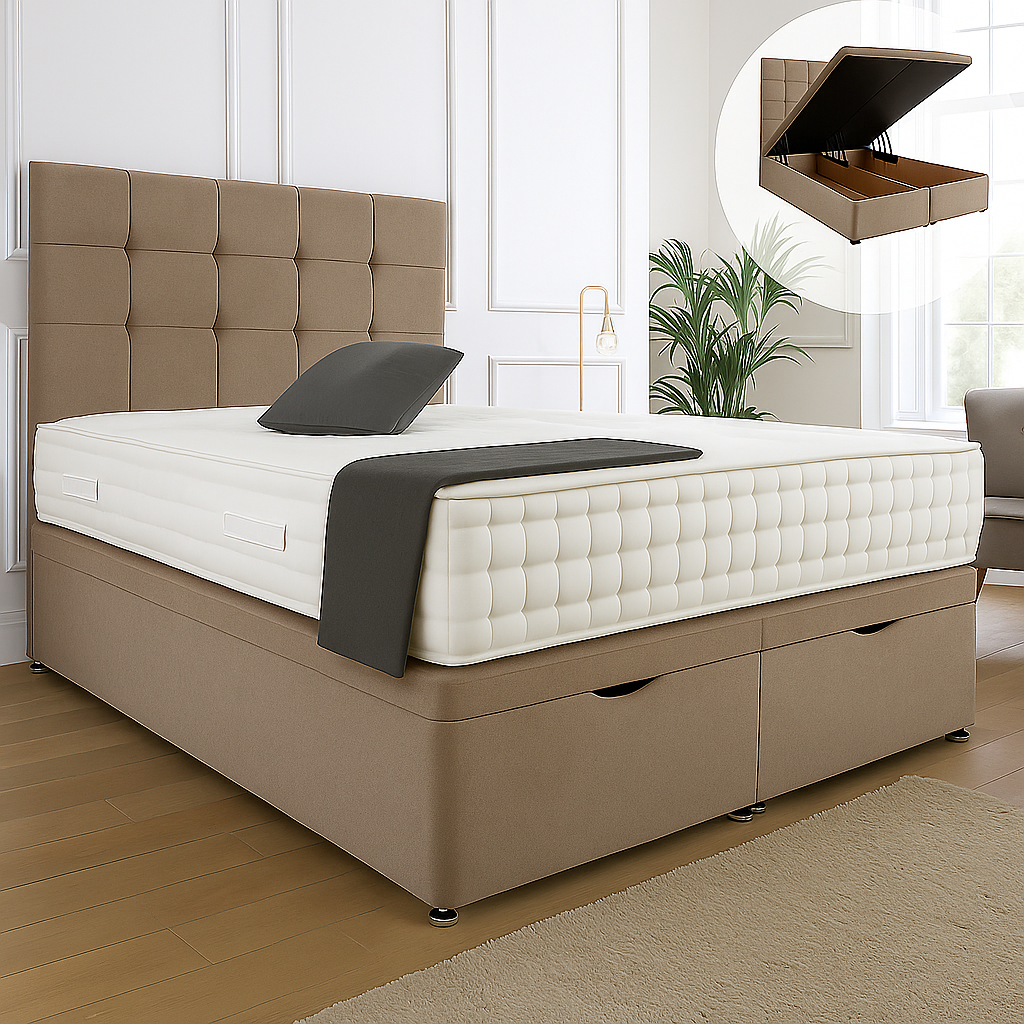 • Kensington Ottoman End Lift Storage Divan Bed - Optional Headboard