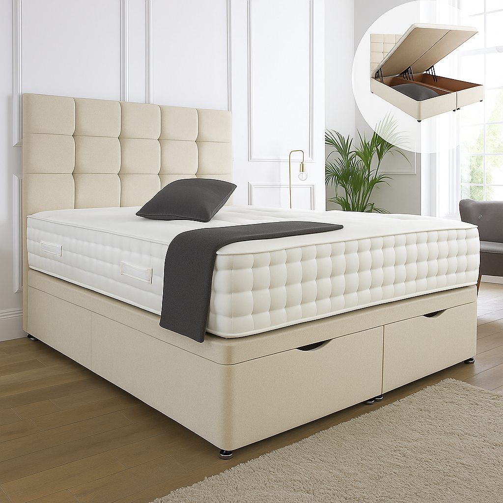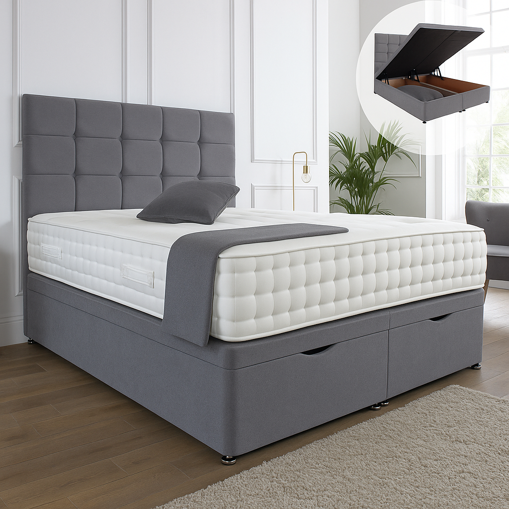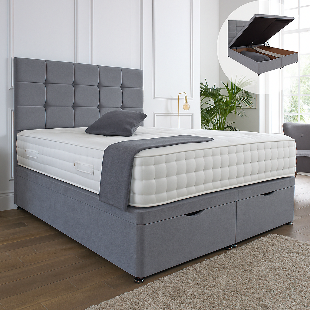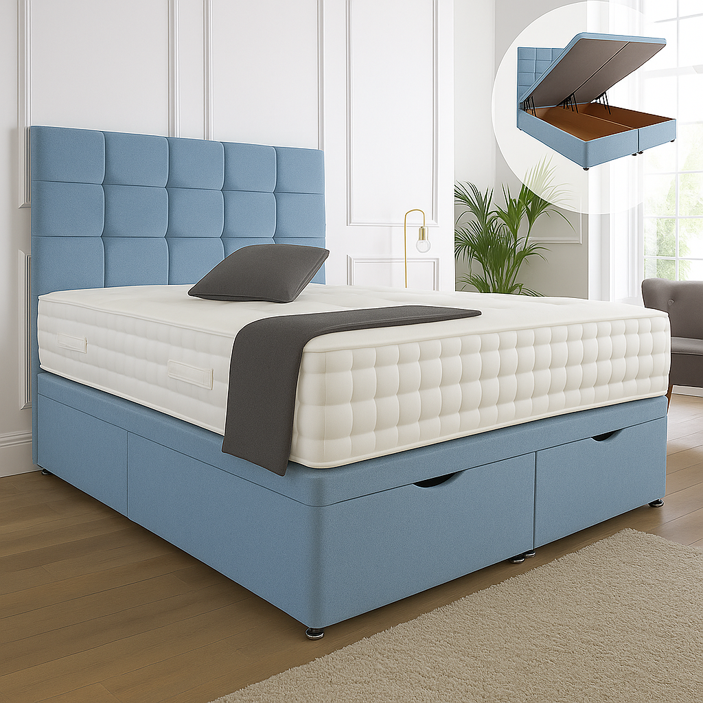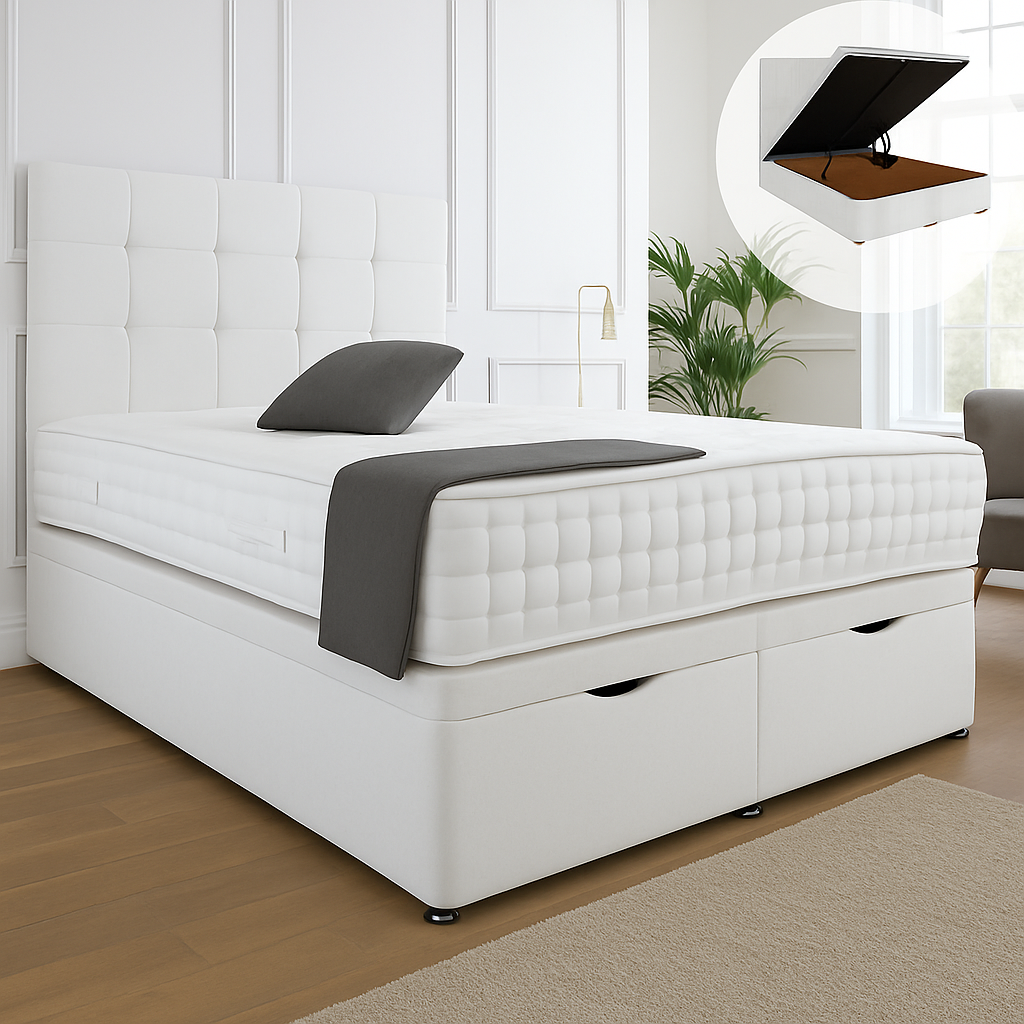 Kensington Ottoman End Lift Storage Divan Bed - Optional Headboard