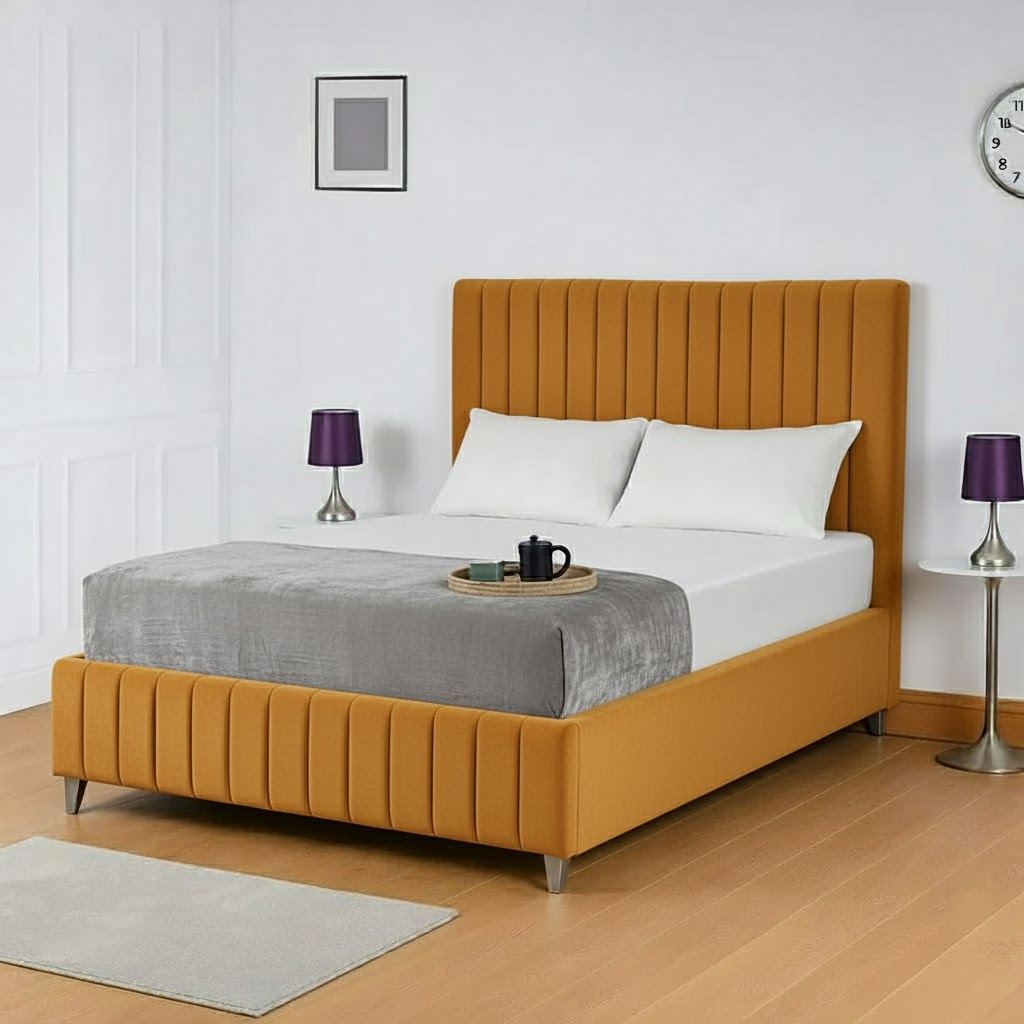 The Milan Upholstered Bed offers a perfect blend of modern simplicity and everyday comfort. Designed with a sleek, padded headboard and smooth fabric finish, it adds understated elegance to any bedroom. The strong wooden frame ensures stability, while its clean lines make it a versatile choice for various décor styles.