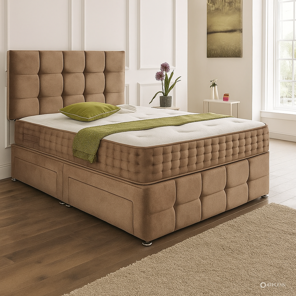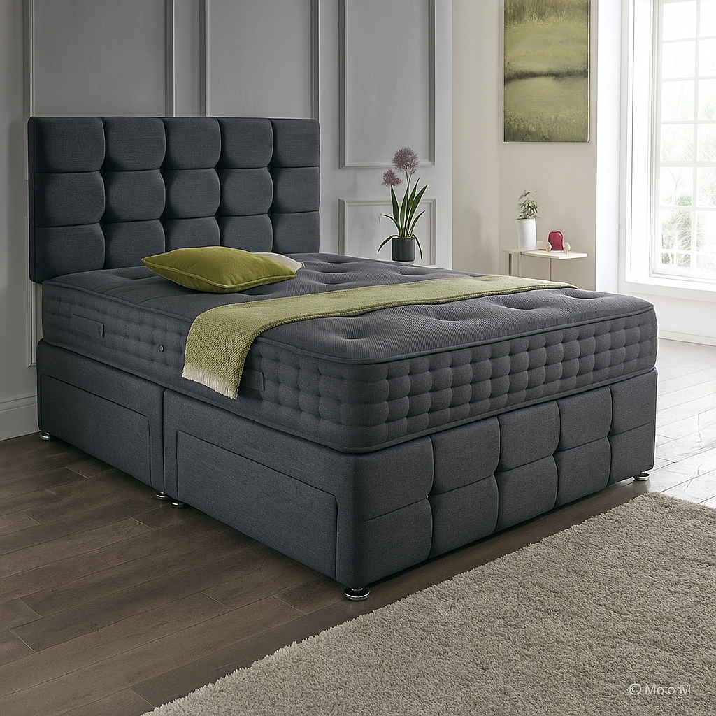 Create a bold, cohesive bedroom look with the Rio Matching Headboard & Footboard Divan Set. Featuring a stylishly upholstered headboard and footboard in a matching finish, this set brings a touch of modern symmetry to your space. The sturdy divan base ensures strong support, while optional storage drawers provide added convenience. Choose from a range of mattress options for your ideal level of comfort