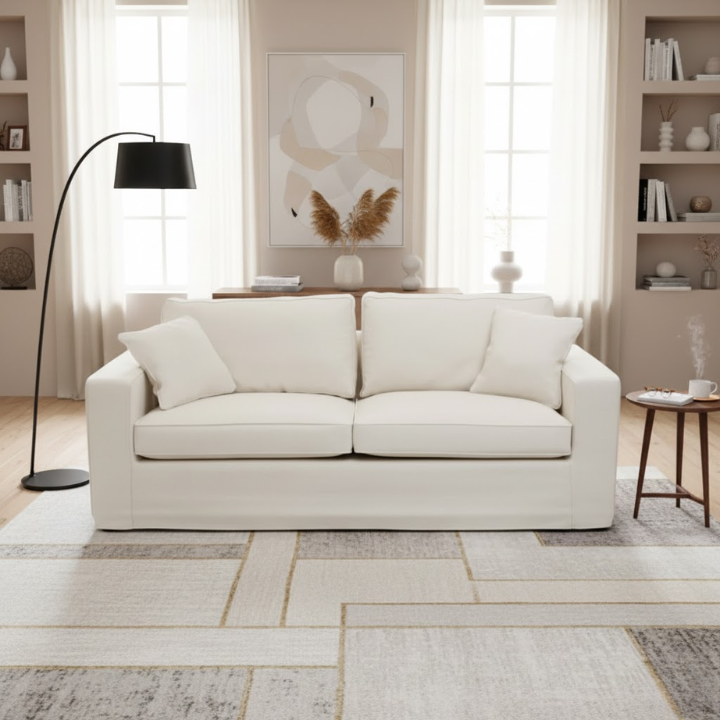 The Valensole Cream Fabric Sofa embodies elegance, comfort, and timeless style, making it a beautiful centerpiece for any living room. Upholstered in a soft, high-quality cream fabric, it creates a warm and inviting atmosphere that complements both classic and contemporary interiors.