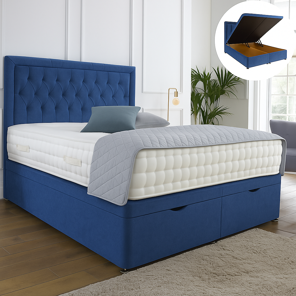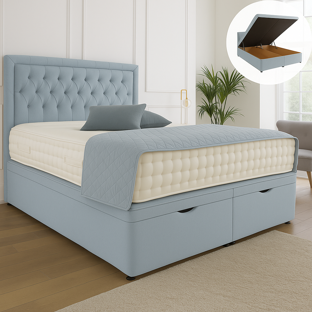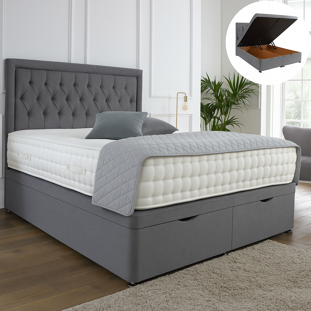 Windsor Ottoman End Lift Storage Divan Bed - Optional Headboard