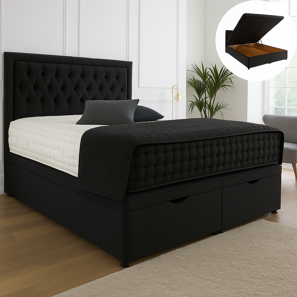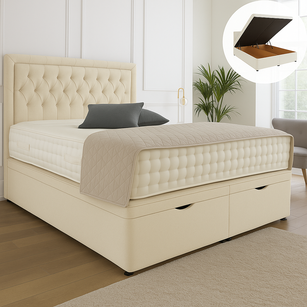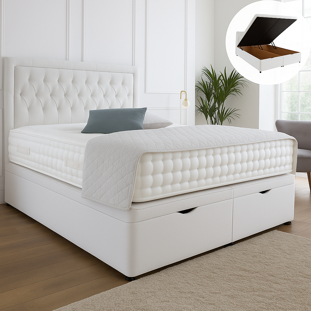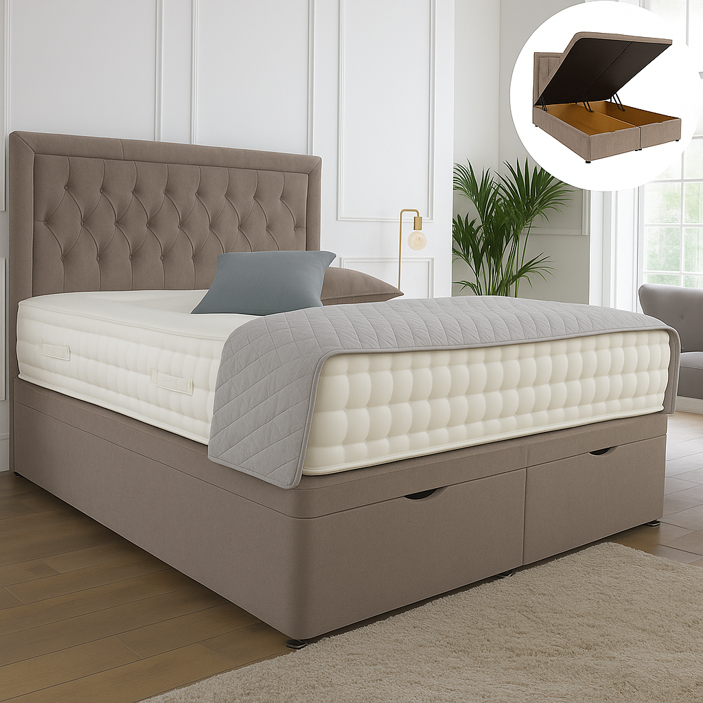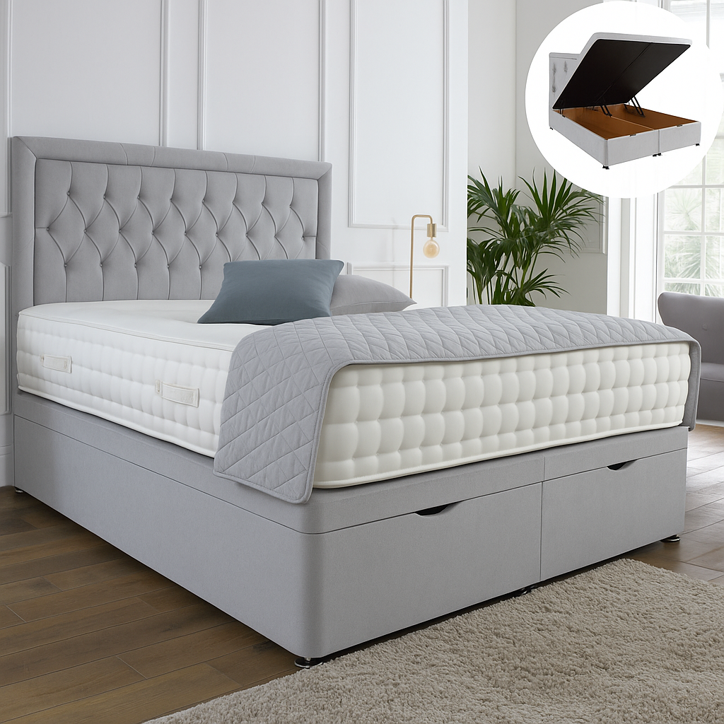 • Windsor Ottoman End Lift Storage Divan Bed - Optional Headboard
