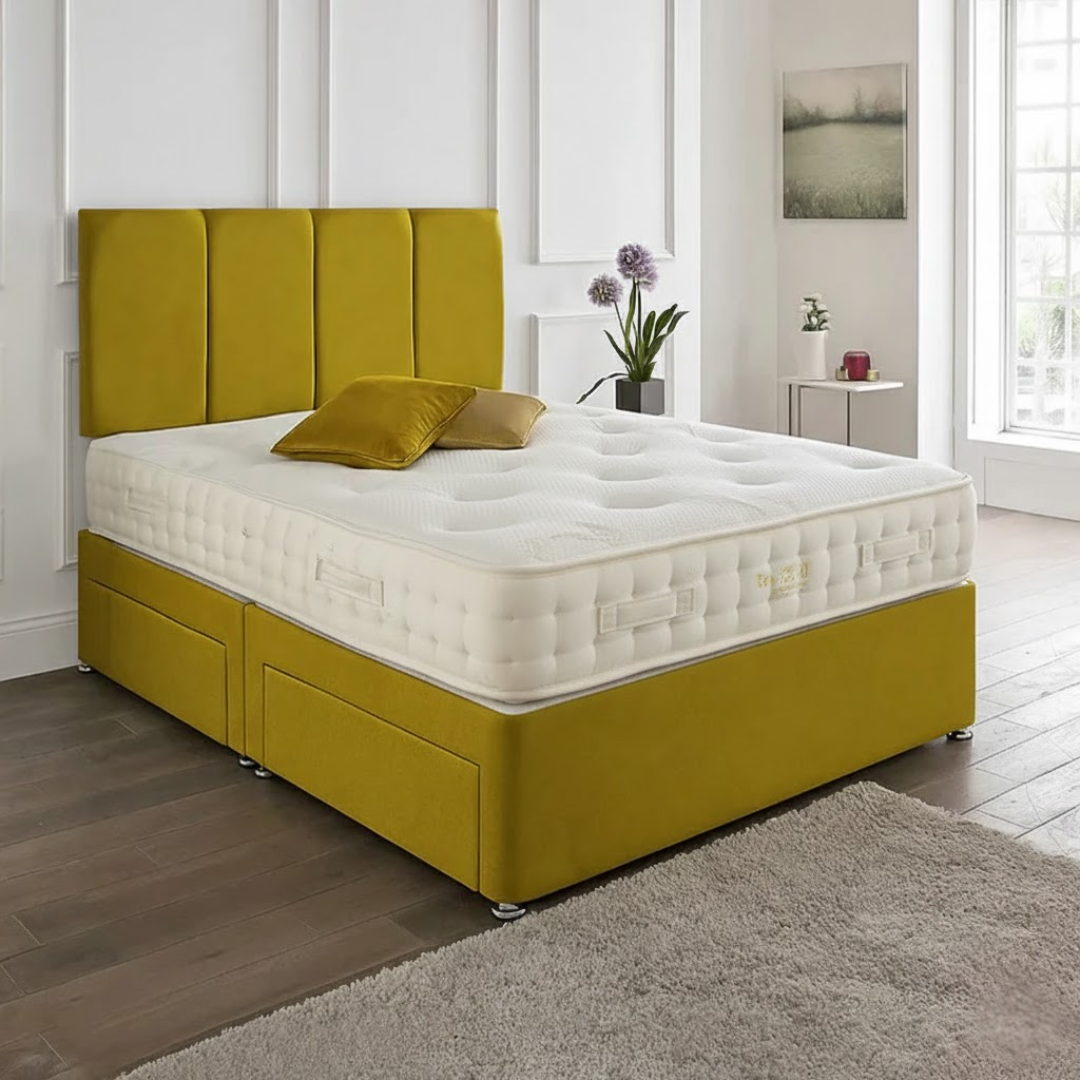 The Zanzibar Headboard Divan Set combines luxurious comfort with practical design. Featuring a stylishly upholstered headboard and a sturdy divan base, this set is available with a range of mattress options to suit your sleep preferences. Built with optional storage drawers, it’s perfect for maximizing bedroom space without compromising on elegance.